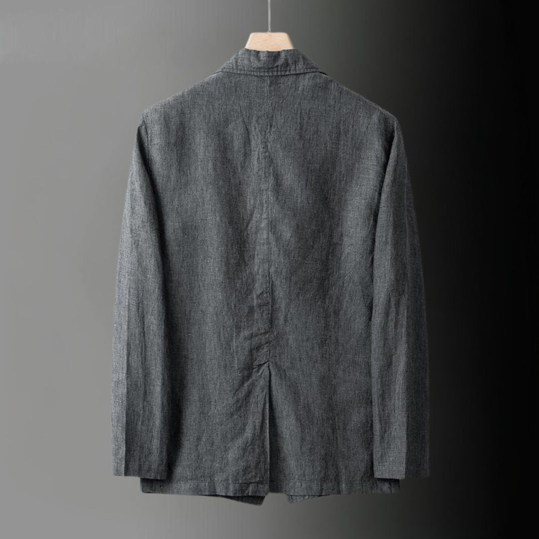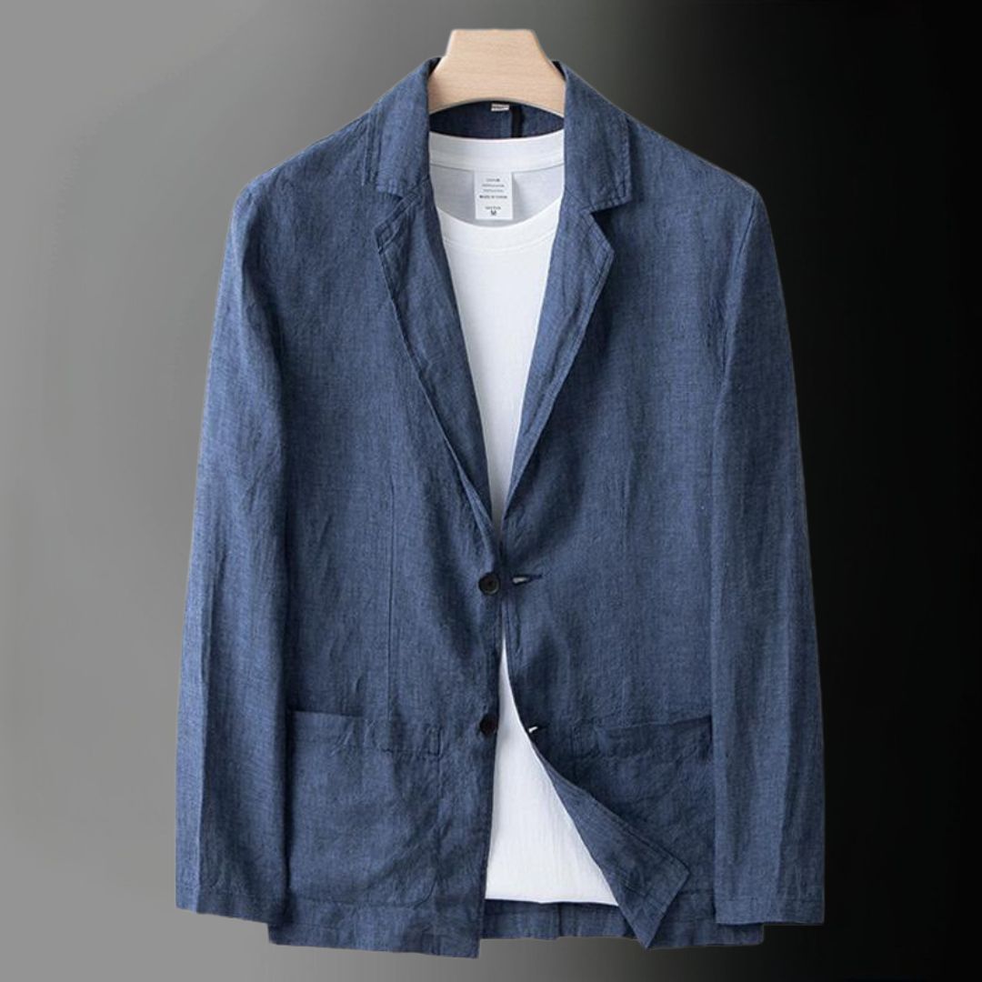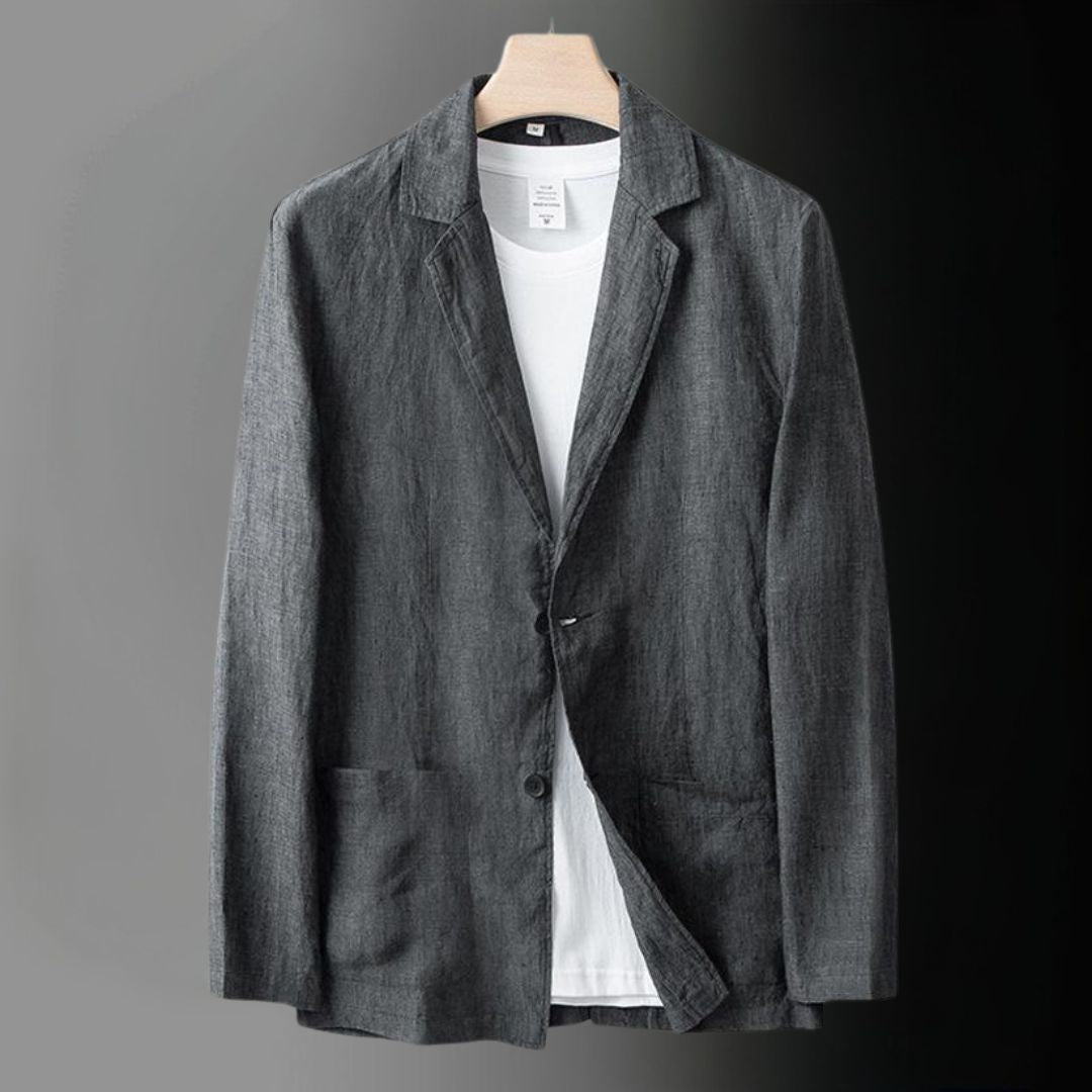 This modern two-piece set blends relaxed tailoring with breathable structure. The lightweight woven fabric keeps you cool, while the blazer’s soft lapel and patch pockets add a sharp finish. Paired with tapered drawstring trousers, it’s the ideal outfit for effortless sophistication on the go.
